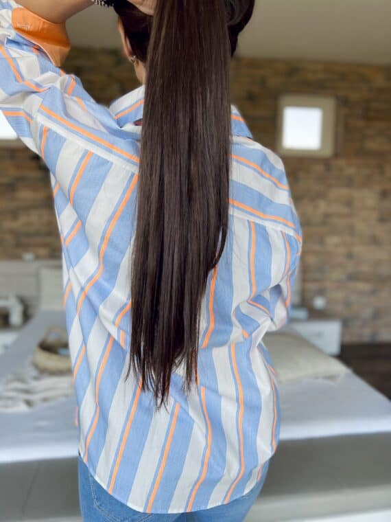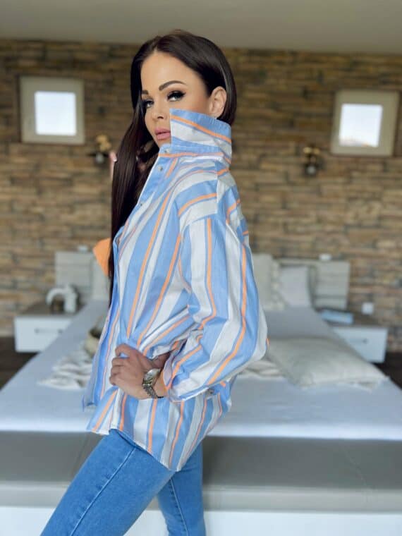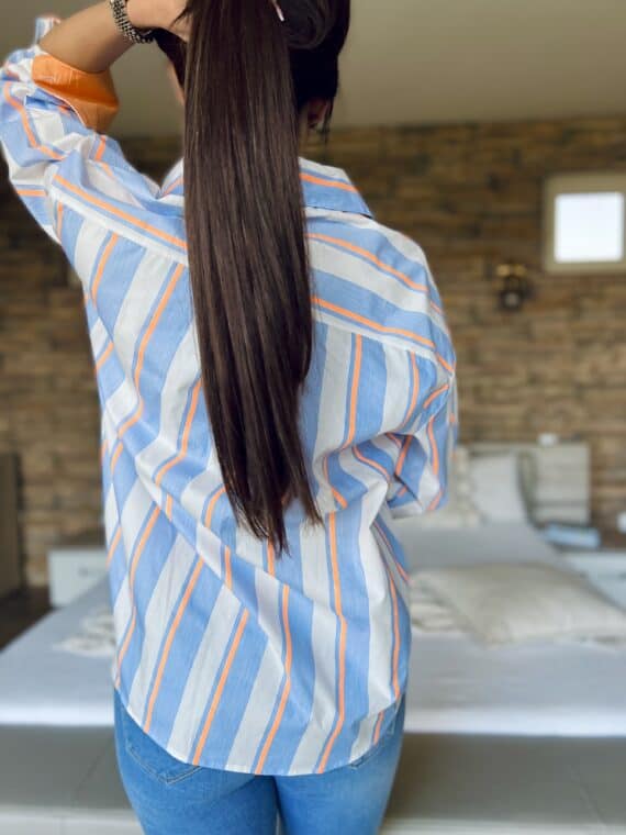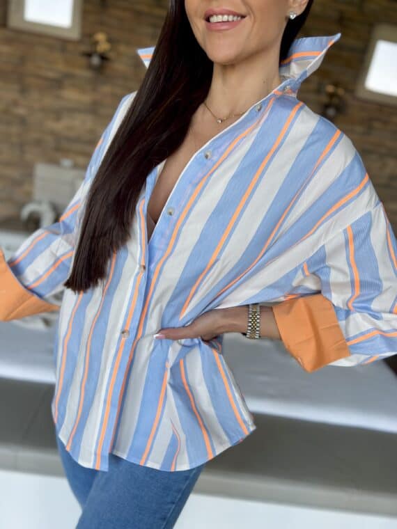 Striped oversized shirt – white/blue/orange