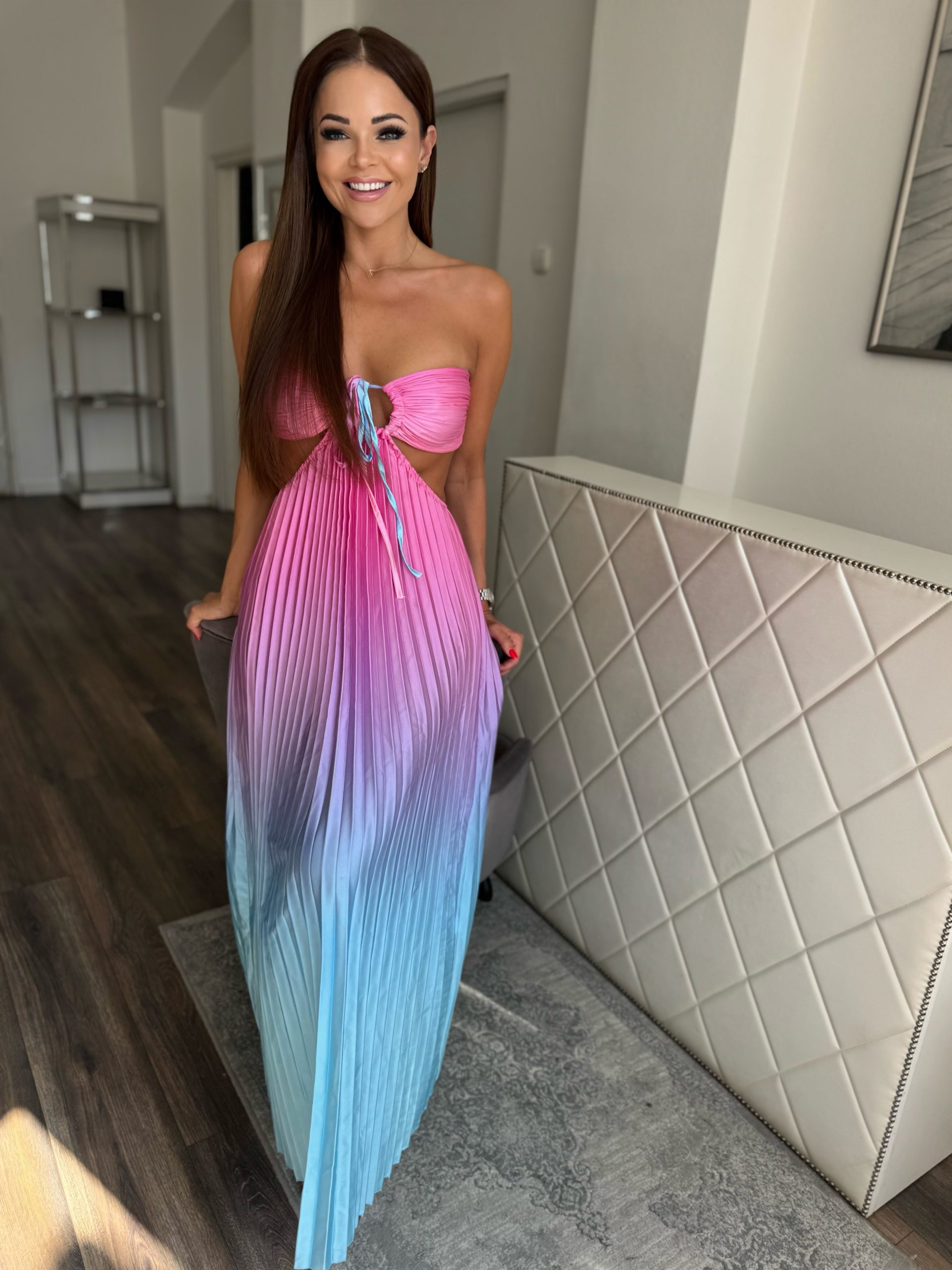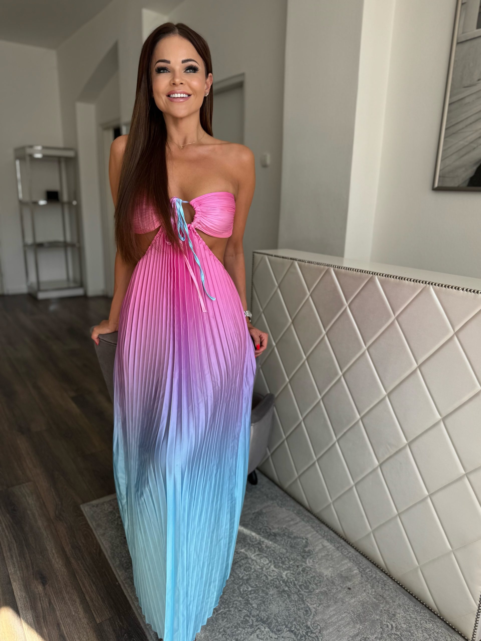 Színátmenetes, pliszírozott, cut out maxi ruha:
