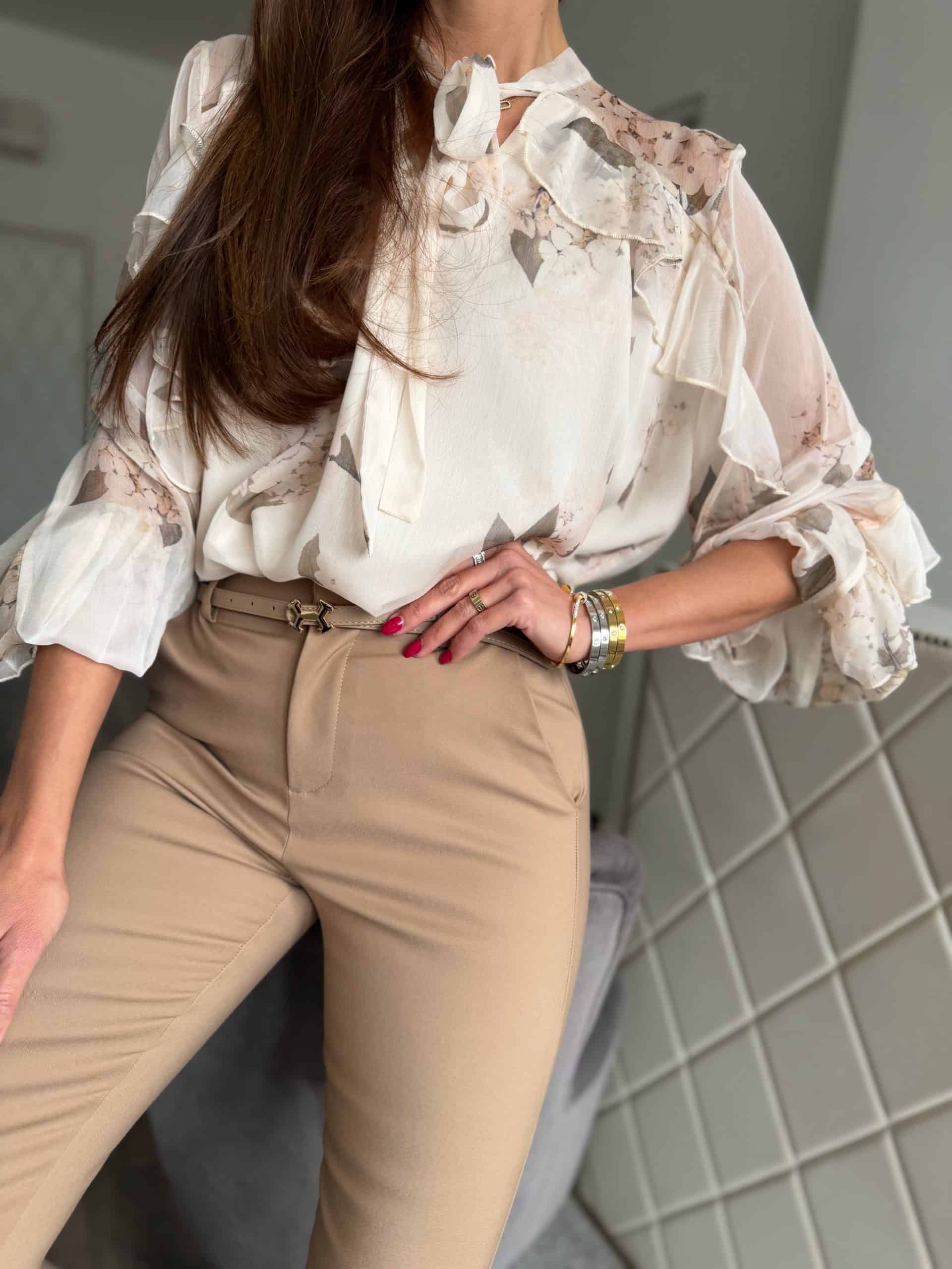 Delicate peachy beige floral blouse:
