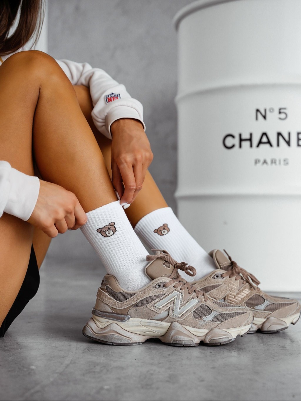 Socks with a little teddy bear pattern on a white background: