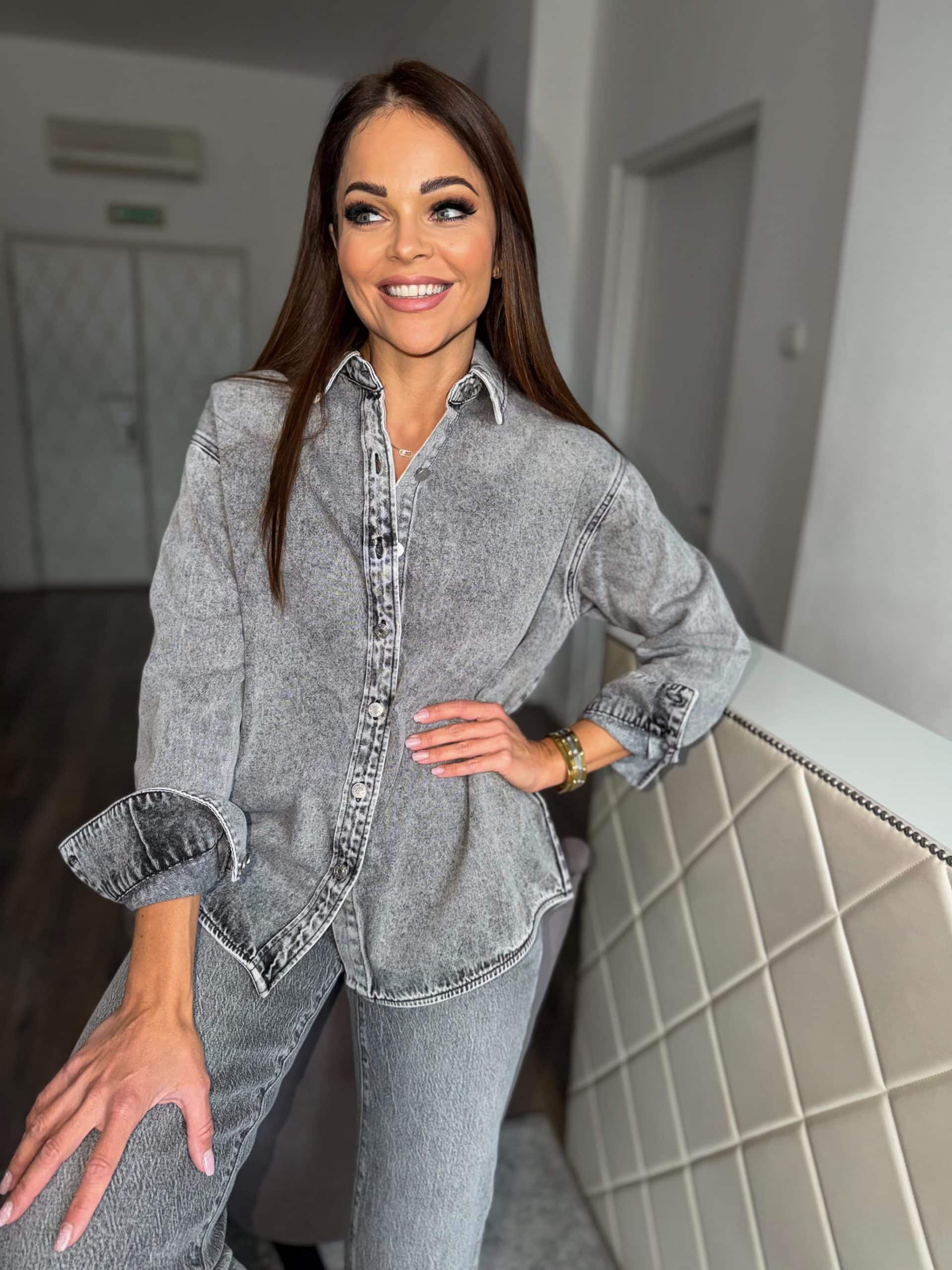 Grey, stone washed denim shirt/jacket: