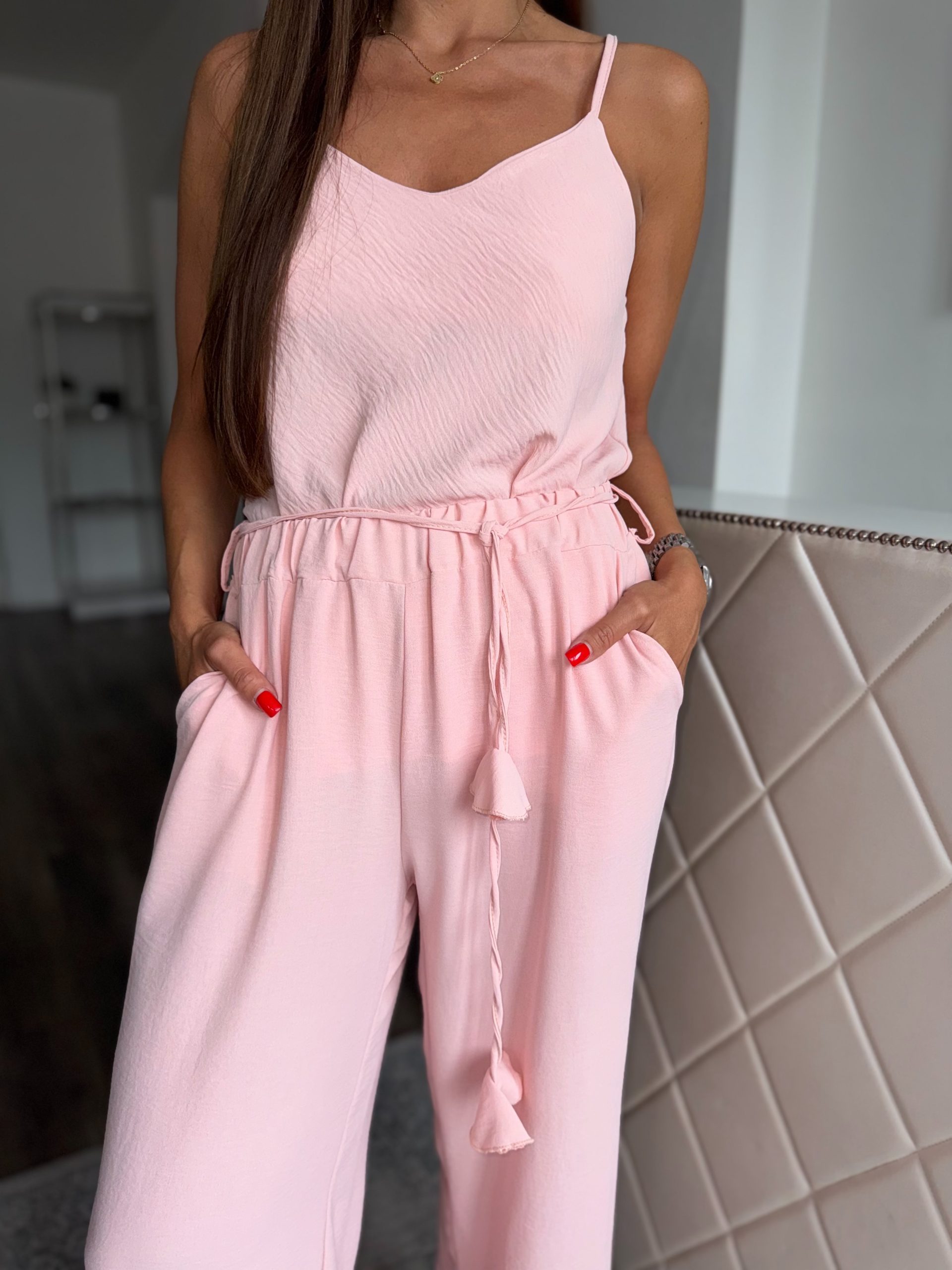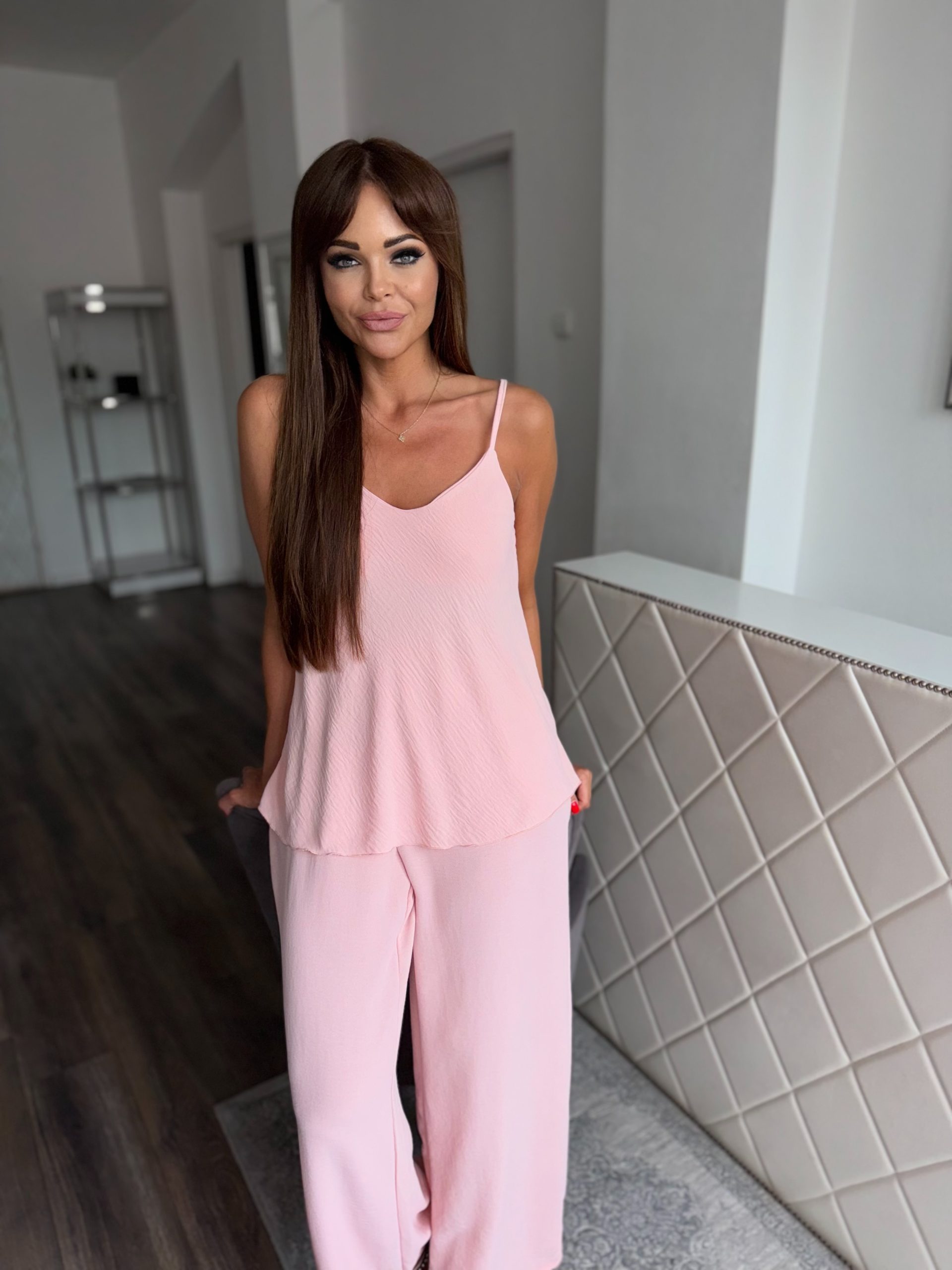 Pale pink top and long trouser set: